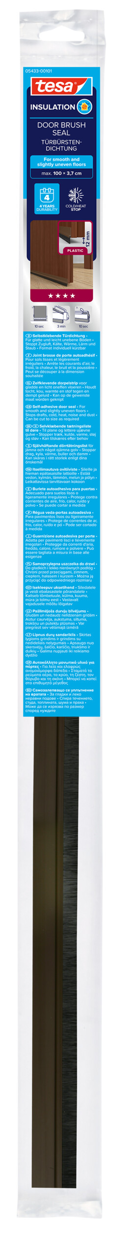 Sobre todo durante las estaciones frías, es fundamental mantener el calor dentro de casa y evitar las corrientes de aire. El bajo puertas Standard de tesamoll®, puede sellar el hueco entre la puerta y el suelo sin taladrar orificios ni apretar los tornillos. Esta junta de la puerta de plástico está disponible en varios colores. Puede cortarse para que coincida exactamente con la puerta. Equipado con un cepillo de nailon fuerte a la abrasión que sirve de junta para la puerta para que de forma efectiva selle los huecos de la puerta y el suelo de hasta 12 mm.