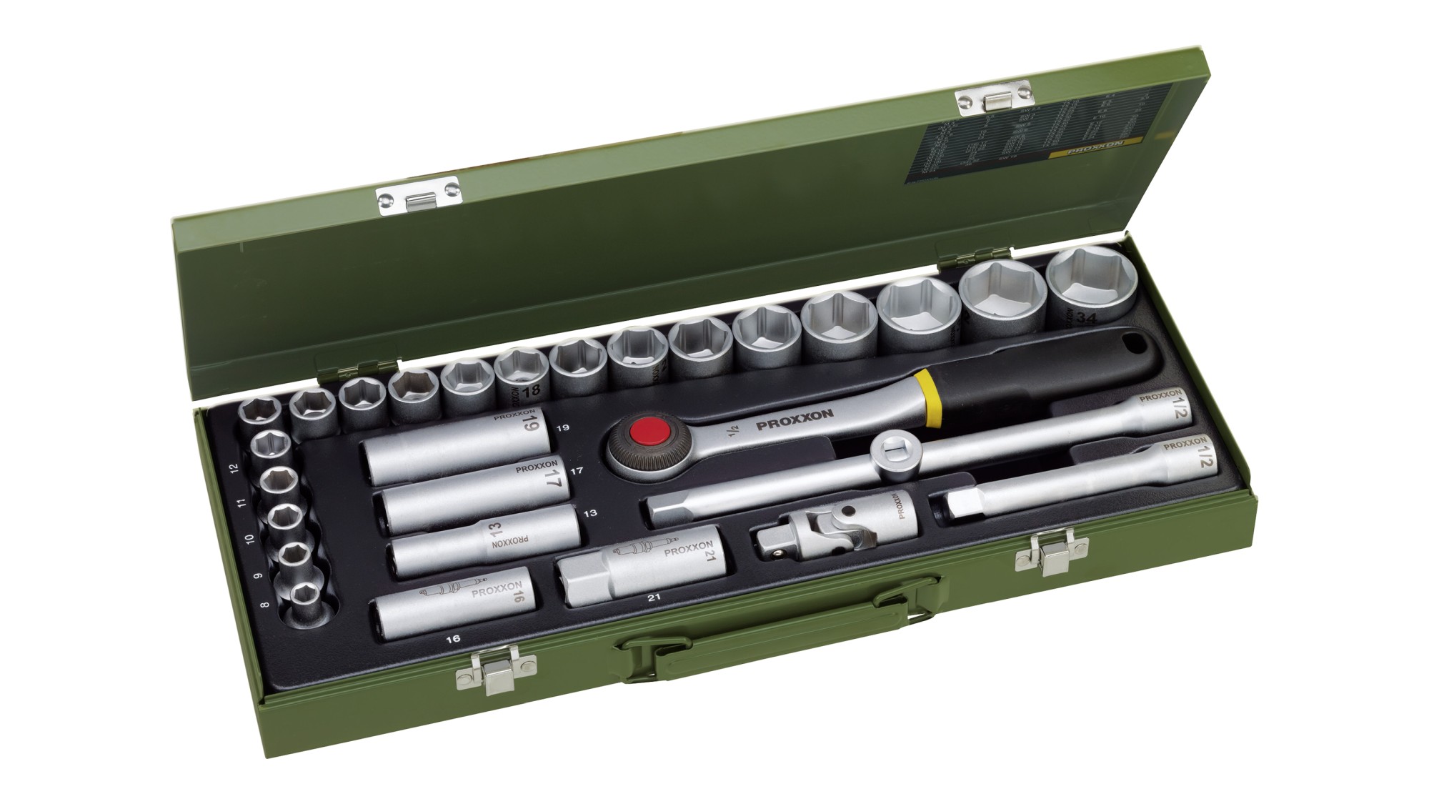 Set de 29 pc de vasos y carracas para los trabajos mecánicos más exigentes. Con carraca de 1/2"