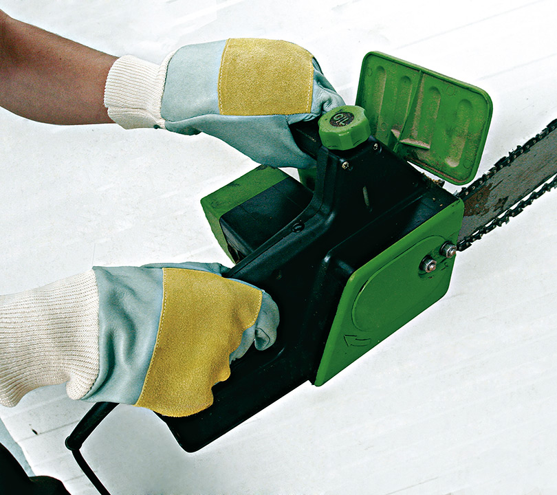 Refuerzo interior en el dorso de 14 capas de material resistente a sierras de cadena con una capa de forro de Kevlar y otra capa de tejido de lona (solo en mano izquierda).