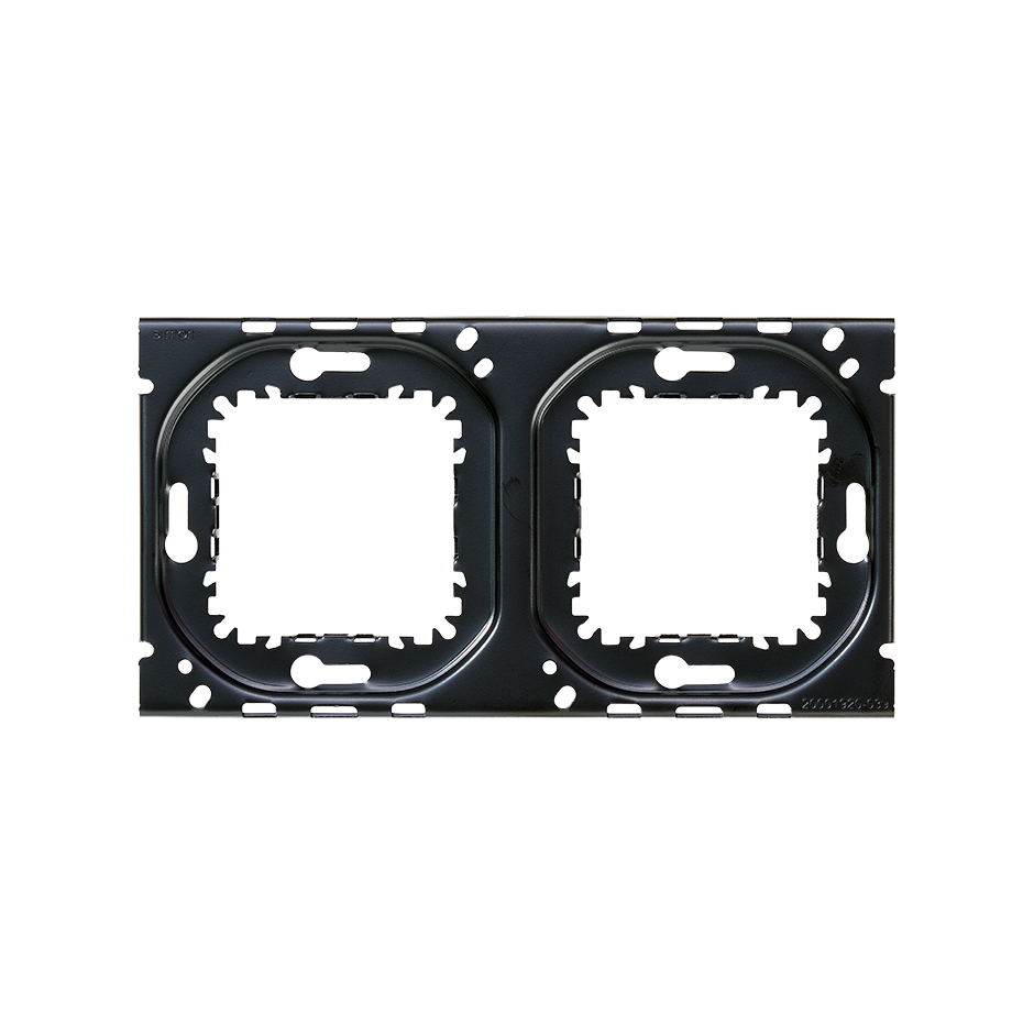 Bastidor de dos elementos de la serie Simon 270, compatible con todos los mecanismos de la gama. Fabricado en acero pintado de alta resistencia y gran rigidez, asegura una perfecta alineación de los mecanismos y minimiza los huecos entre marcos y funciones, consiguiendo un acabado limpio y armonioso. Se puede instalar en cajetín universal y colocarse tanto en sentido vertical como horizontal, adaptándose a cualquier necesidad de instalación. Temperatura de funcionamiento: 5 a 40 °C. Temperatura de almacenamiento: -25 a 50 °C. Para su limpieza, utilice un paño suave ligeramente humedecido en agua con jabón, evitando productos abrasivos o con cloro.