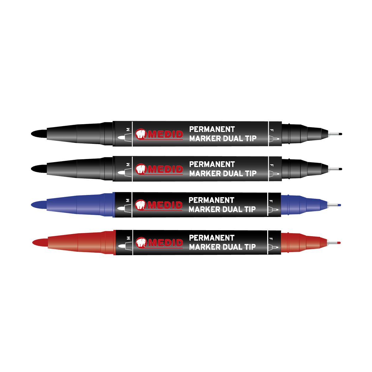 Los marcadores permanentes de doble punta MEDID ofrecen versatilidad y precisión para todo tipo de trabajos de marcado. Cada rotulador incorpora dos puntas —una fina de 1 mm (F) para trazos detallados y una media de 2,5 mm (M) para marcajes amplios—, lo que permite adaptarse a distintas necesidades de uso.