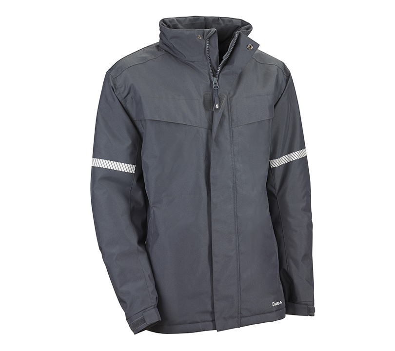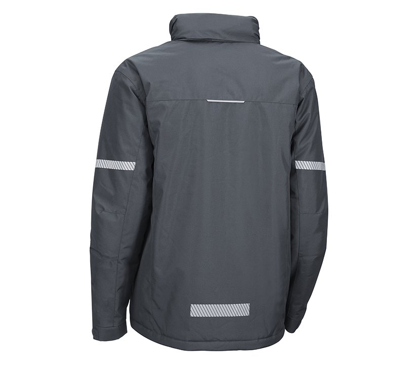 Parka acolchada con bandas reflectantes en brazos y trasera ideal para trabajar en entornos húmedos.
