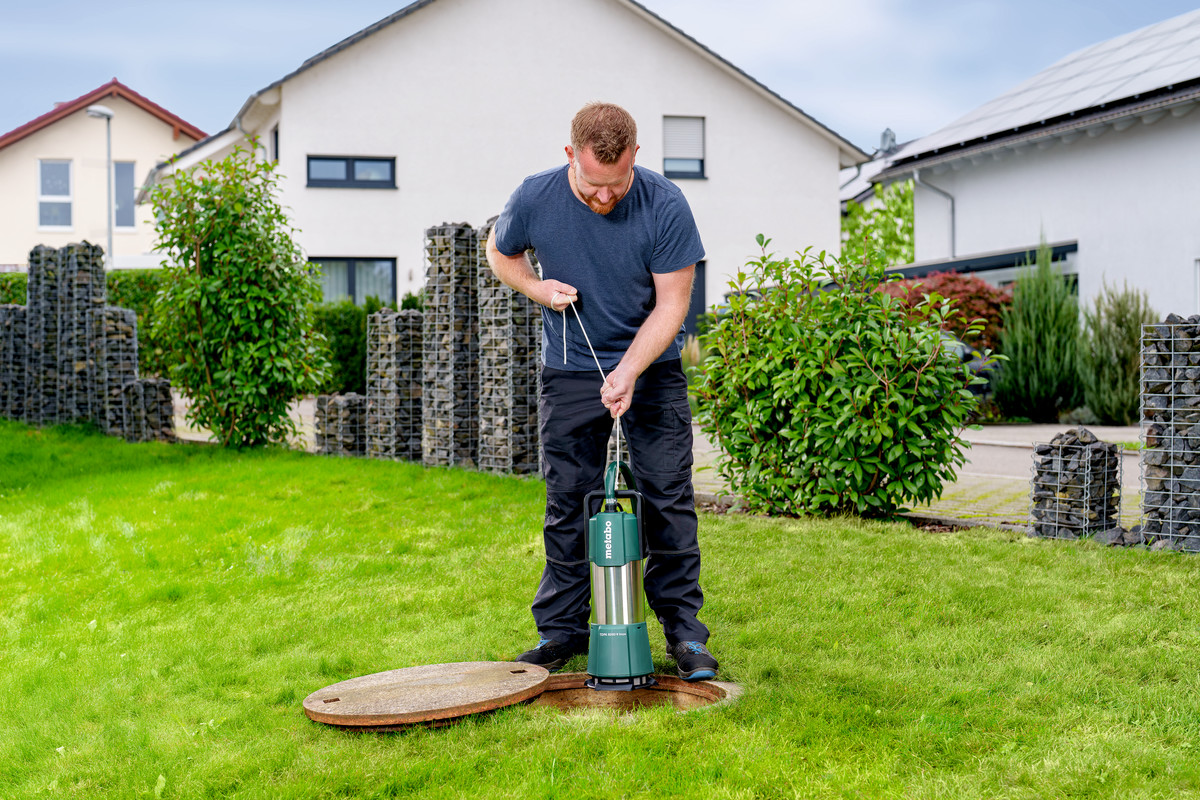 Bomba de presión sumergible automática para riego de jardín y abastecimiento de otros consumidores desde fuentes profundas como pozos o cisternas.