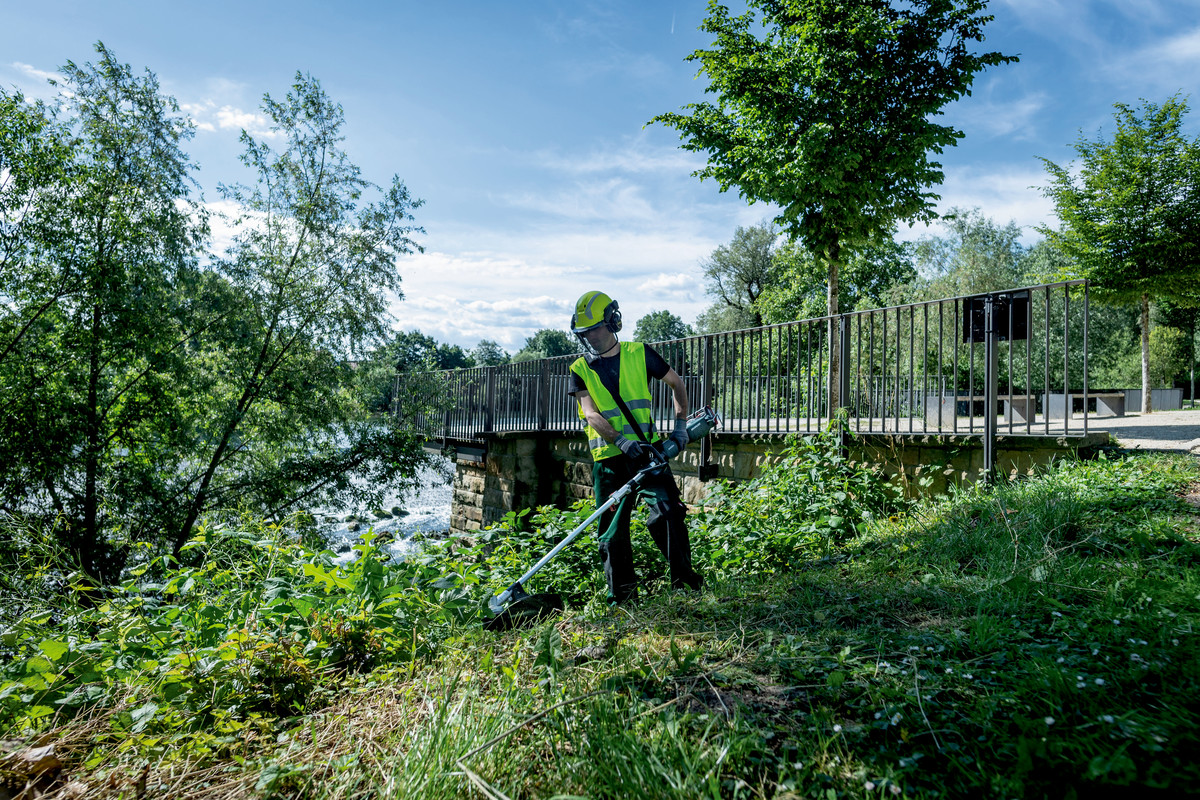 Accionamiento con 2 potentes baterías de 18 voltios para los accesorios del sistema multifuncional de Metabo, la solución todo en uno para trabajar en el jardín