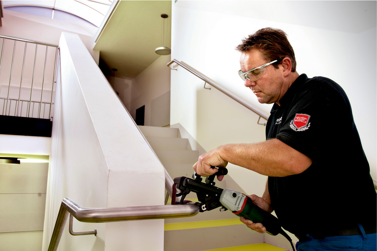 Cambio de la cinta de lijar sin herramientas y guía de la cinta ajustable