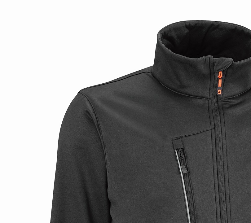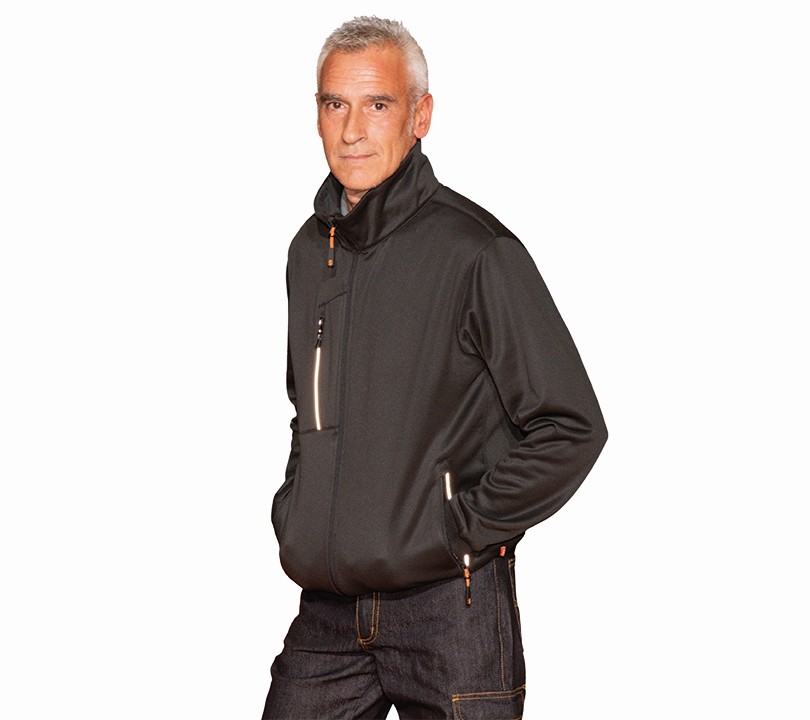 Cierre central con cremallera equipada con ribete reflectante, que mejora la visibilidad en condiciones de poca luz.
